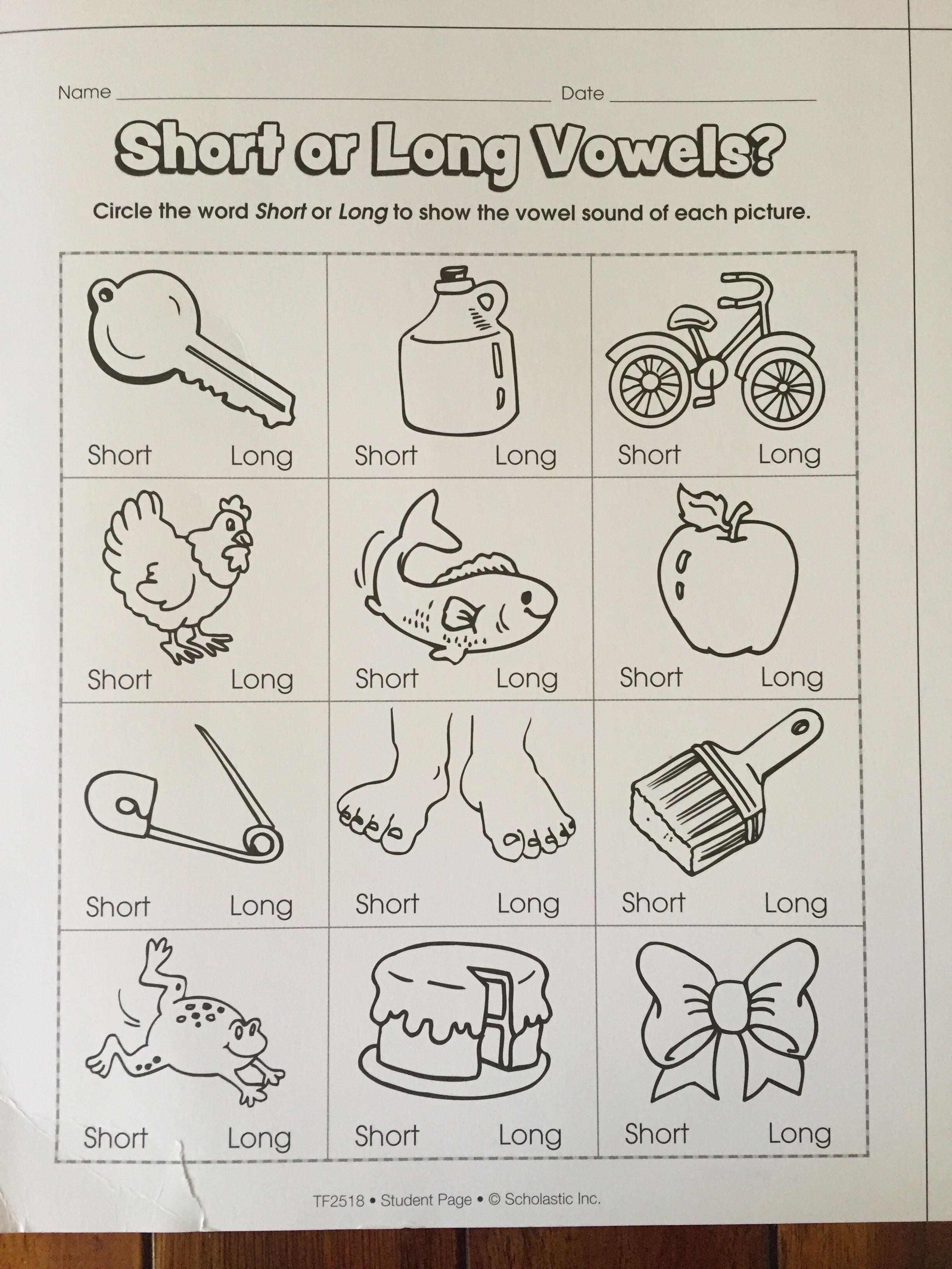 Exercício: escolha se o som da vogal de cada palavra é curto ou longo.