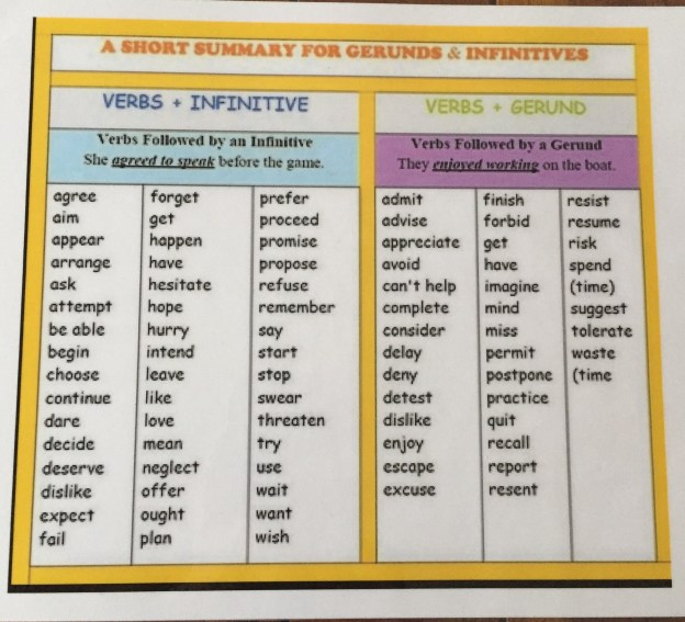 Gerúndio versus infinitivo Quando devemos usar o gerúndio – ING ou o infinitivo TO ? Não existe uma regra clara para isso! Temos que memorizar alguns verbos que pedem o uso do ING ou outros que pedem TO Segue uma lista dos verbos principais e como devem ser usados. Like Loading...