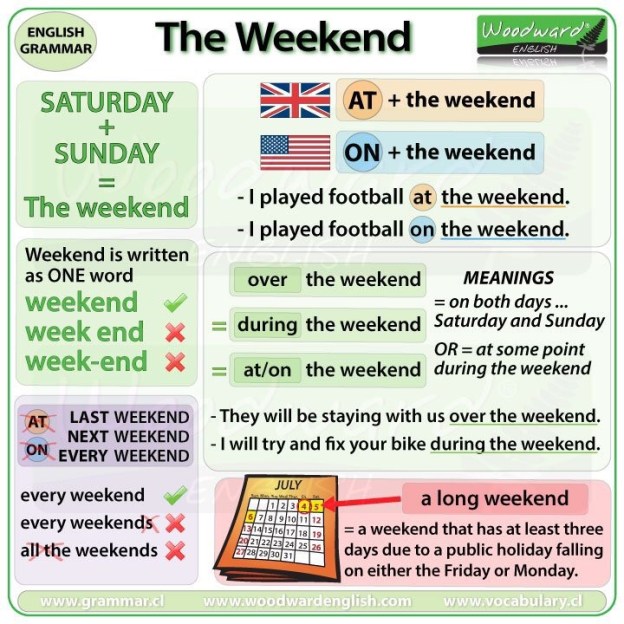 Segue uma imagem com muitos detalhes e explicações que podem ajudar sobre Final de semana e seu uso correto