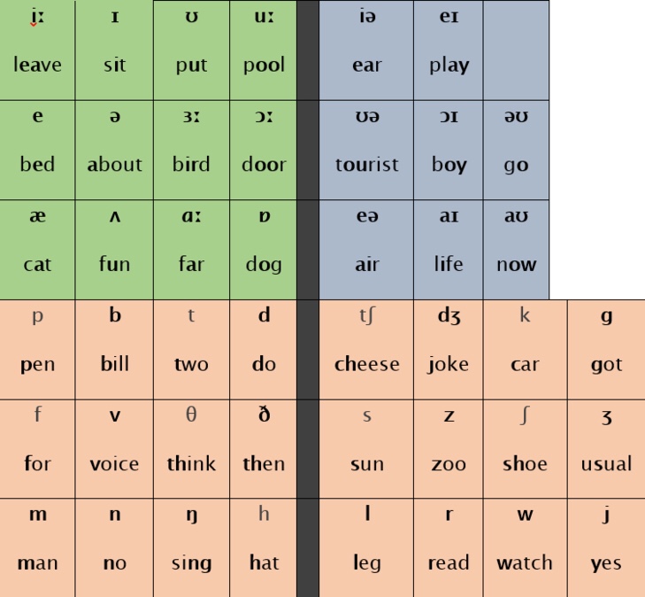 A poster or diagram of the phonemic symbols arranged in a particular order. Below is an example of the International Phonetic Alphabet or IPA.
